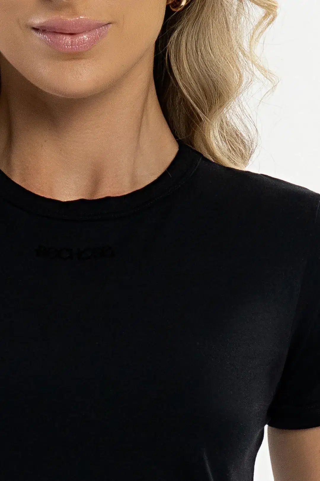 Seu visual minimalista com gola careca e modelagem reta combina com tudo, do look esportivo ao casual chic. O detalhe em couro sintético termocolante adiciona um toque moderno e discreto.
