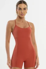 O Macaquinho Jasmim Terracota é a fusão perfeita entre elegância, funcionalidade e conforto. Com alças finas ajustáveis e cós anatômico, proporciona um caimento que valoriza o corpo com firmeza e leveza.