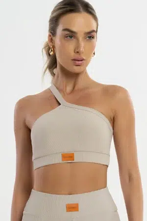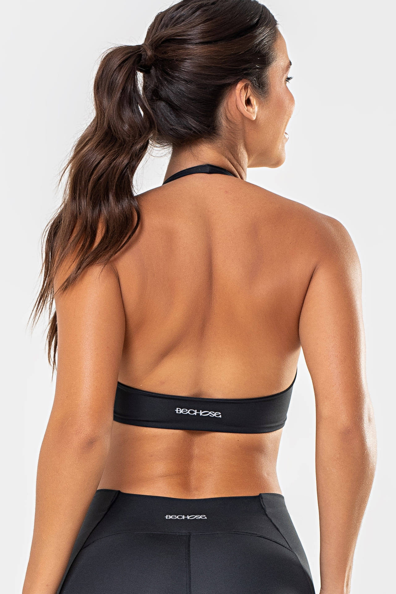 Tecido de poliamida com frente em camada dupla: firmeza e sustentação sem abrir mão do conforto.